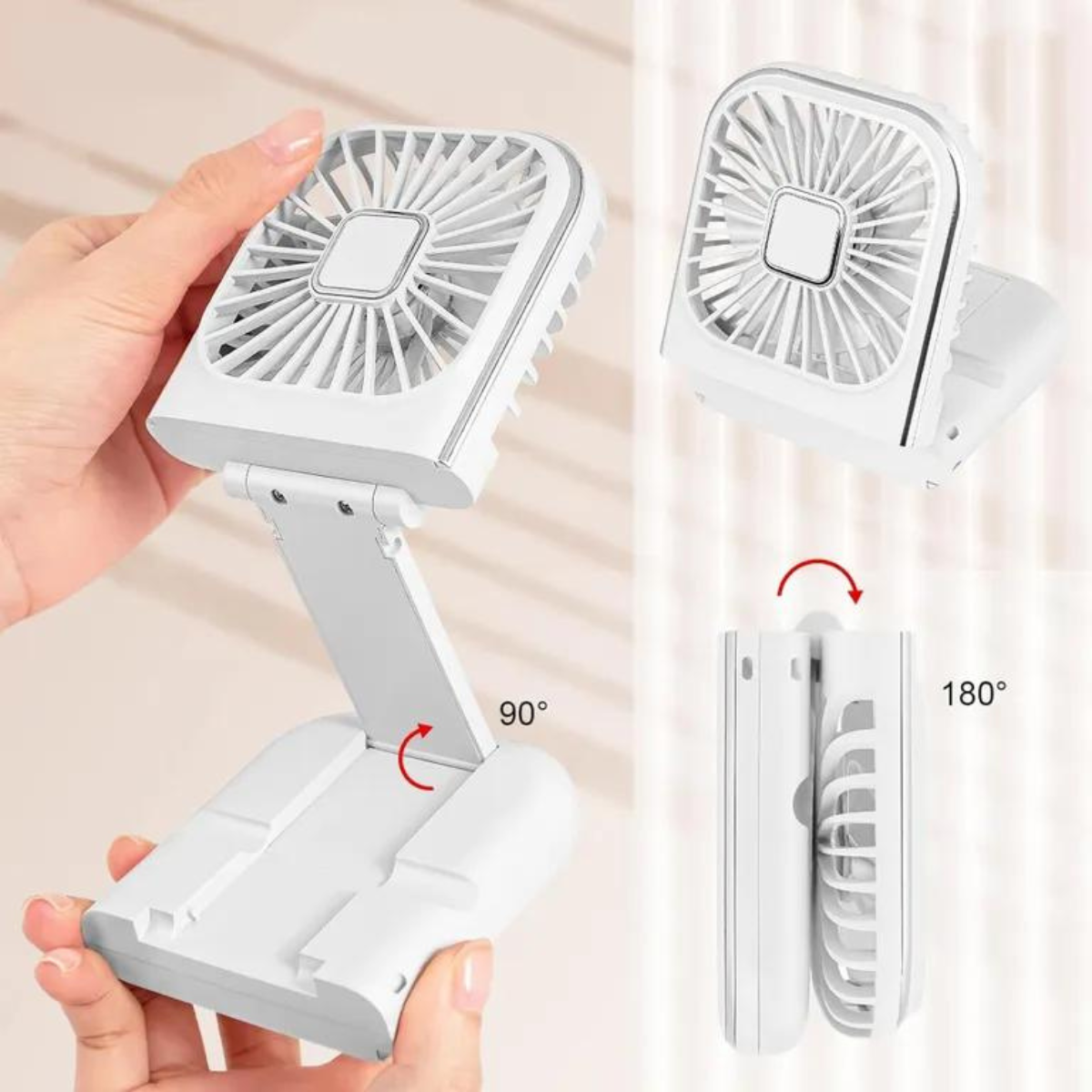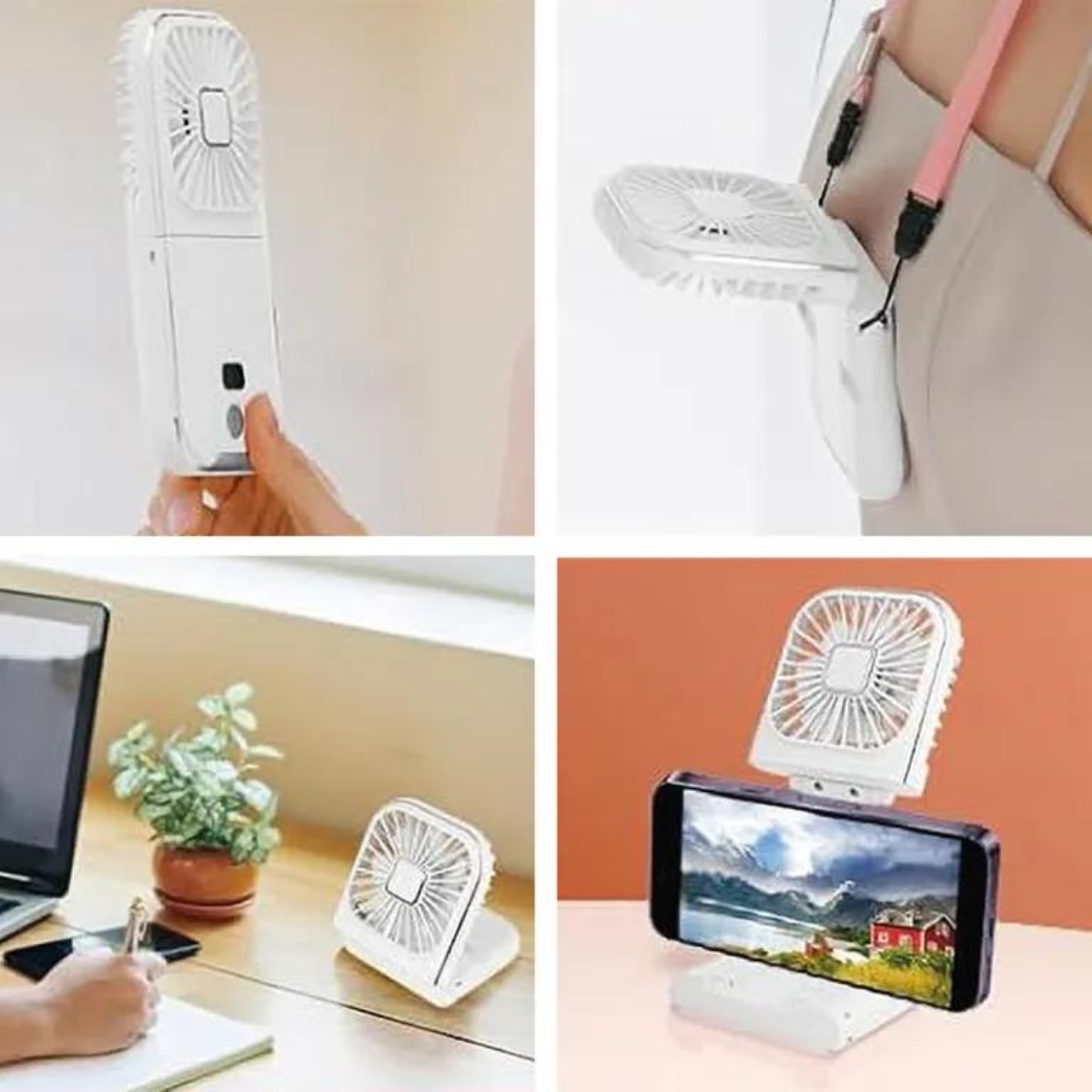 4 in 1: Neck fan, Hand fan, Desk fan, Phone stand
