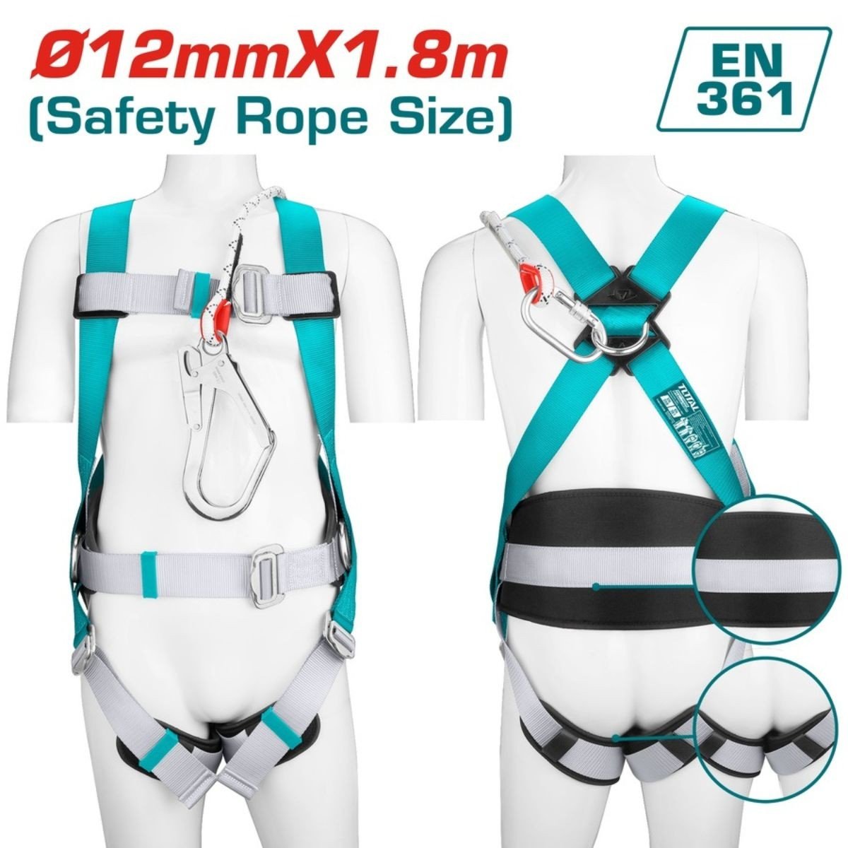 - Μέγεθος σχοινιού ασφαλείας : ¢13mm*1,8m