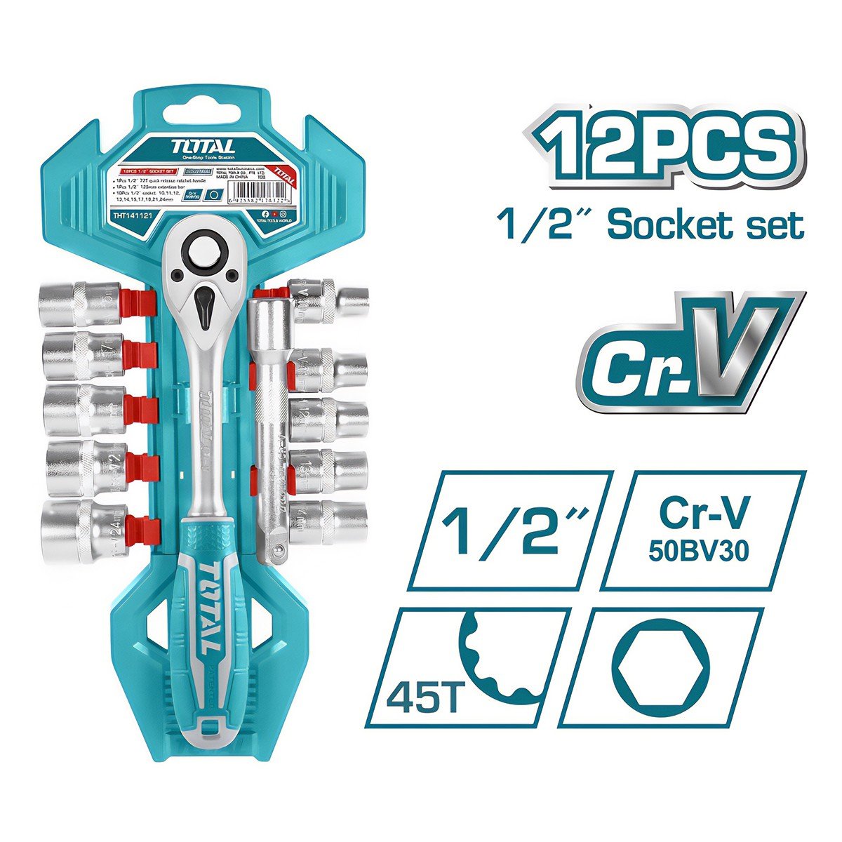 TOTAL 12PCS 1/2″ SOCKET SET (THT141121)