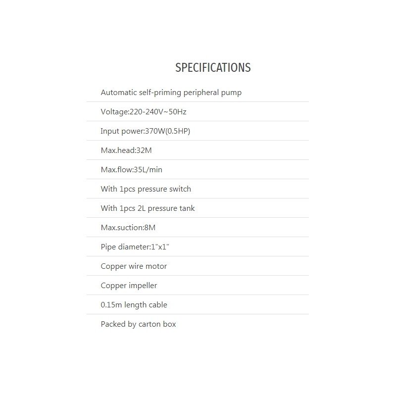 TOTAL AUTOMATIC SELF – PRIMING PERIPHERAL PUMP 370W (TWP93706)