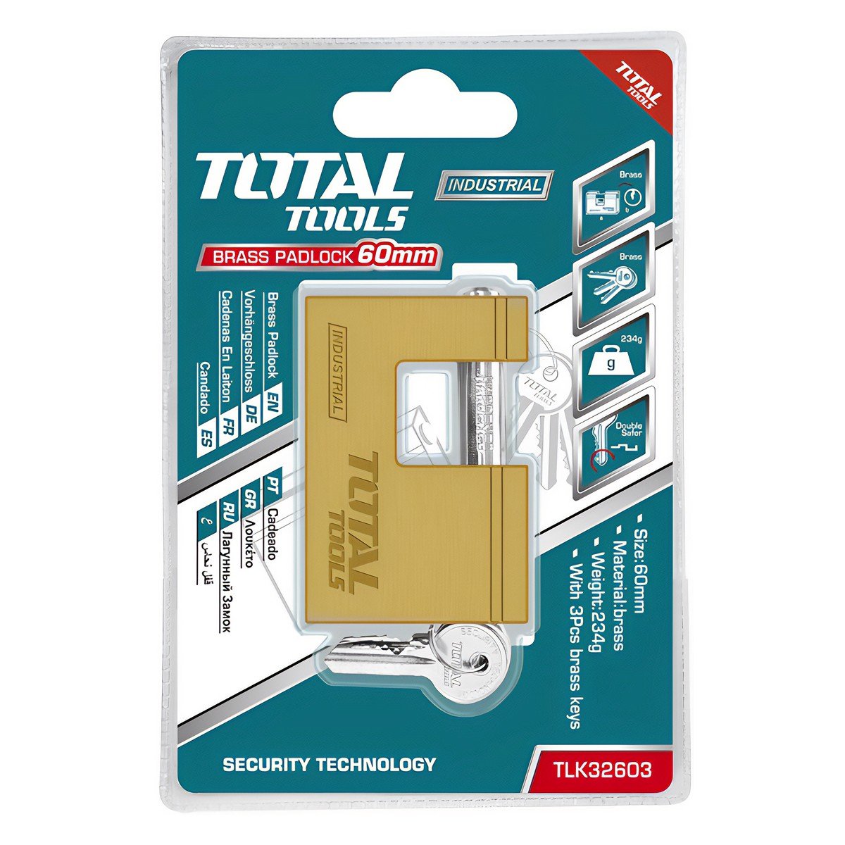 TOTAL BRASS BLOCK PADLOCK 60MM