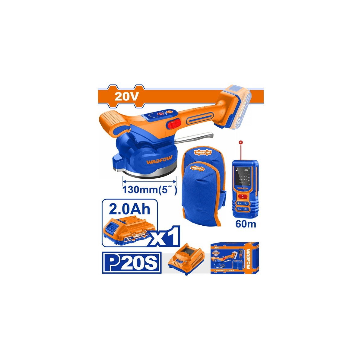 WADFOW ΣΕΤ ΔΟΝΗΤΙΚΟ ΠΛΑΚΙΔΙΩΝ ΜΠΑΤ. Li-ion 20V / 2Ah / 1 ΜΠΑΤΑΡΙΑ